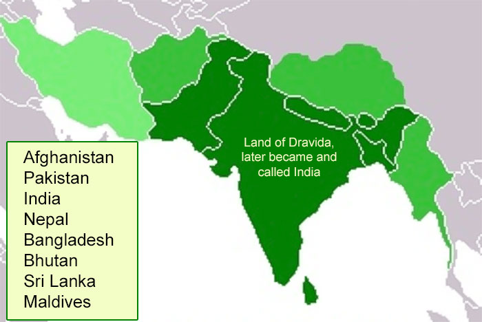 The dark green land was called South Asian Sub-Continent and the habitants were NAGAS (later got a name Dravidians). Even today Dravidians live in all these places, but linguistically & culturally became different.